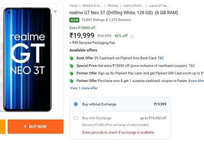 Realme GT Neo 3T Price in India Drops to Rs. 19,999 During Flipkart Big Savings Days Sale 2023: Details