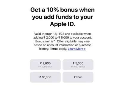 Apple Offering 10 Percent Bonus to Users in India When Adding Funds to Apple ID