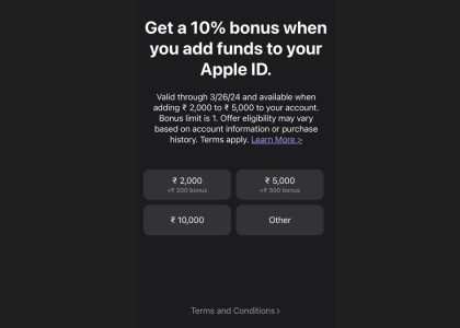 Apple Offers Up to Rs. 500 Bonus for Adding Funds to Apple ID in India