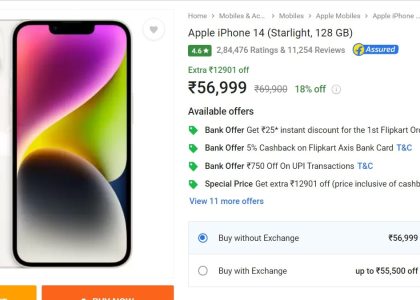 iPhone 14, iPhone 14 Plus Price in India Discounted on Flipkart, Now Starts at Rs. 56,999
