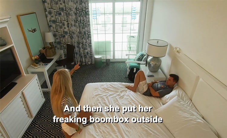 Yara then reveals that Angela brought a boombox out and played music outside their room. She says they are at a hotel, and there are other guests they should consider. She finds it disrespectful.
