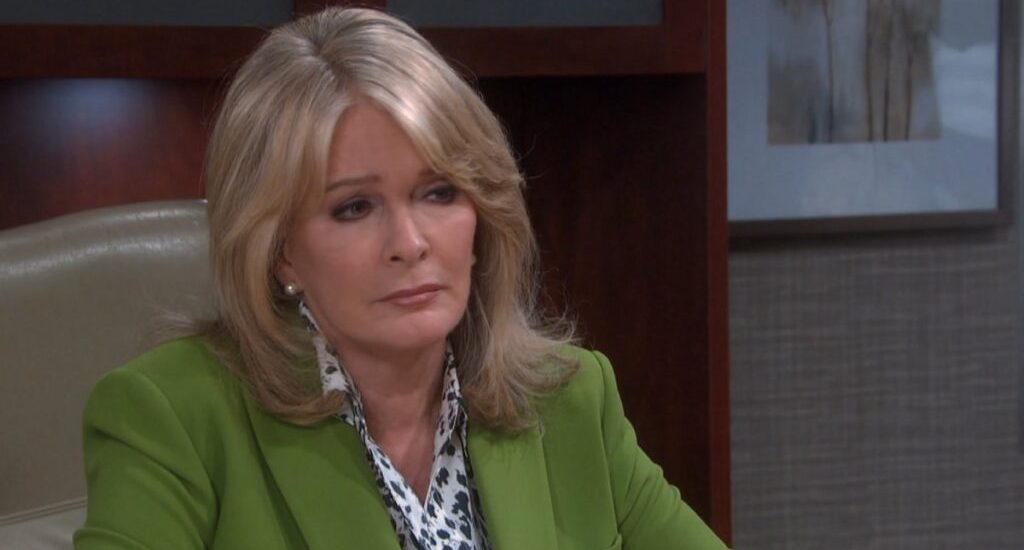 DOOL weekly spoilers report that Dr. Marlena Evans (Deidre Hall) sees her new patient, Everett Lynch (Blake Berris). He’s been diagnosed with a traumatic brain injury. But Marlena knows there’s something more to Everett’s double life. Can he not remember that he was Bobby Stein?