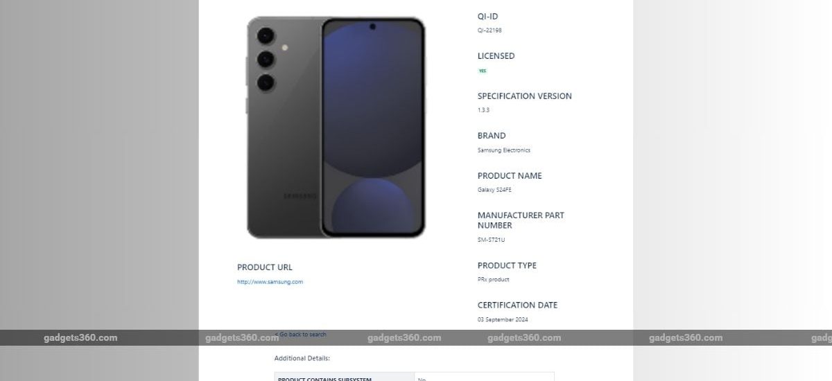 First spotted by 91Mobiles, the WPC database features a listing for the Samsung Galaxy S24 FE with the model number SM-S721U, which has been hinted at in previous leaks. When launched, the purported smartphone is said to support a “maximum load power” of 15.0W.