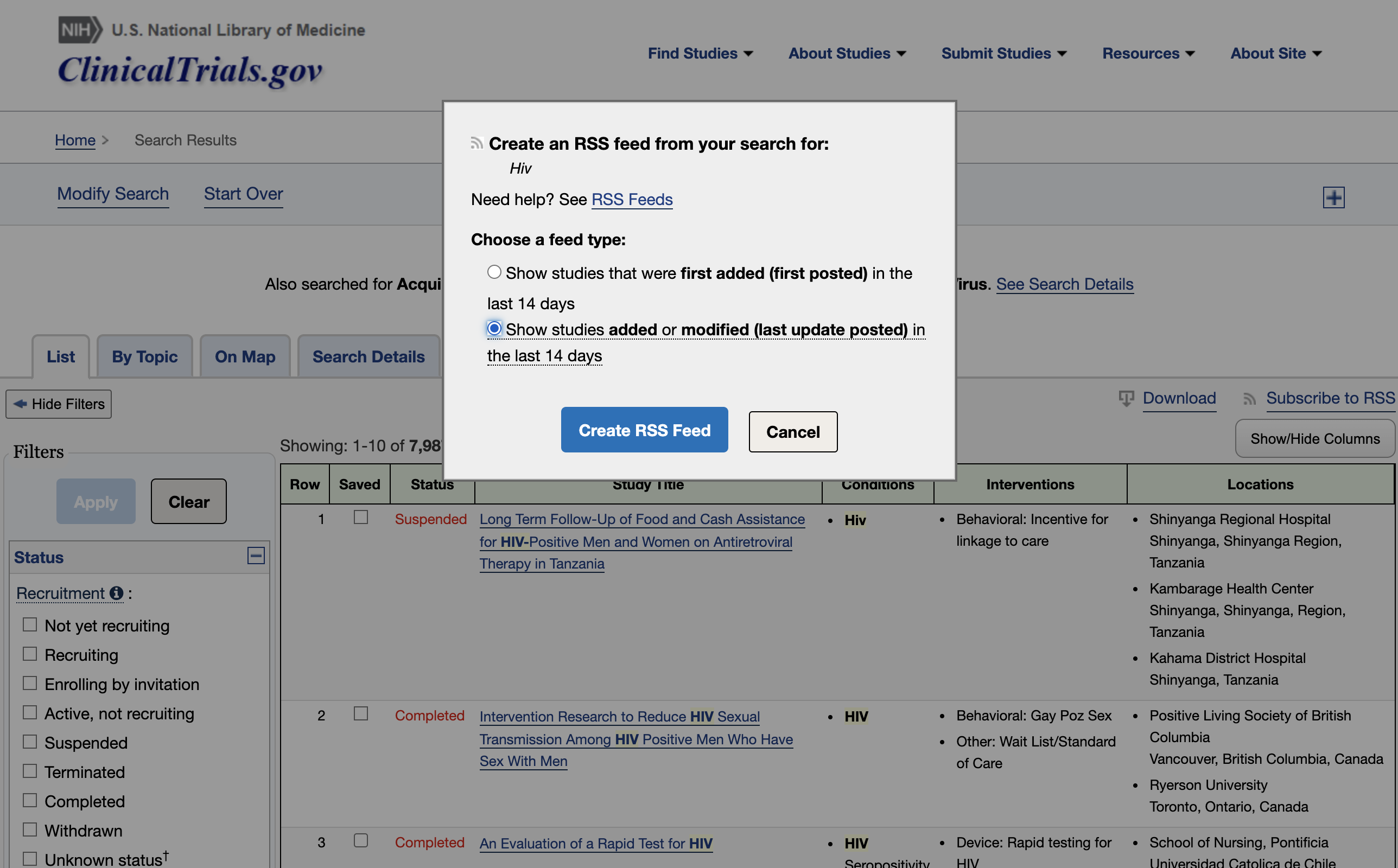 Cut through the noise and build custom RSS feeds on ClinicalTrials.gov with the information you need.