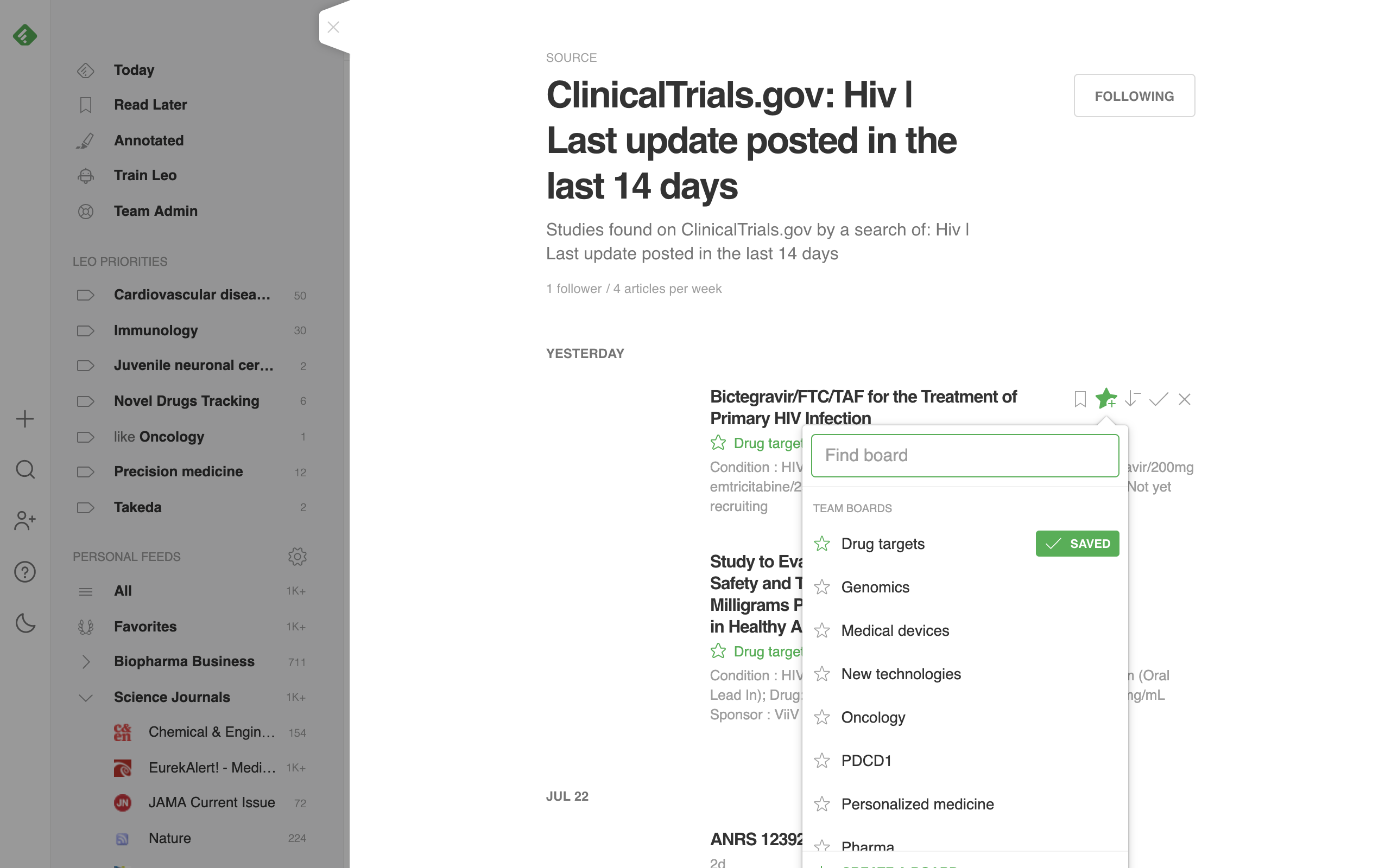 Streamline your biopharma intelligence by adding custom ClinicalTrials.gov feeds to your Feedly.