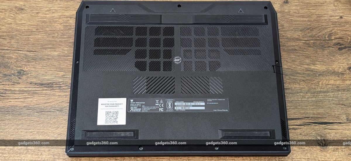 The Acer Predator Helios Neo 16 looks like most other gaming laptops while offering some unique design elements. The lid is made from aluminium and has a single-colour RGB logo along with a few laser-etched encrypted codes at the corners. These codes basically reveal to be nothing more than ‘Helios Neo’ and ‘Join Predator Force’. You will find instructions on how to decrypt the codes online.