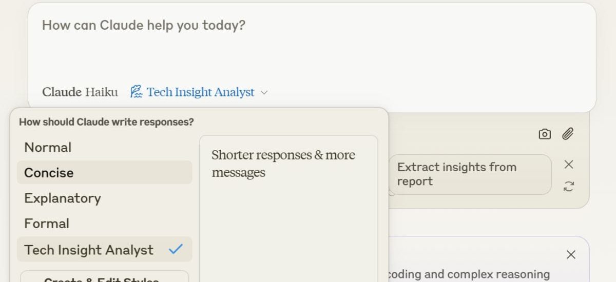 Once a user taps on the icon, users can see four preset options — Normal, Concise, Formal, and Explanatory. The Formal style generates clear and polished responses while the Concise style generates shorter and direct responses. Anthropic says the Explanatory style is suitable for “educational responses for learning new concepts.”