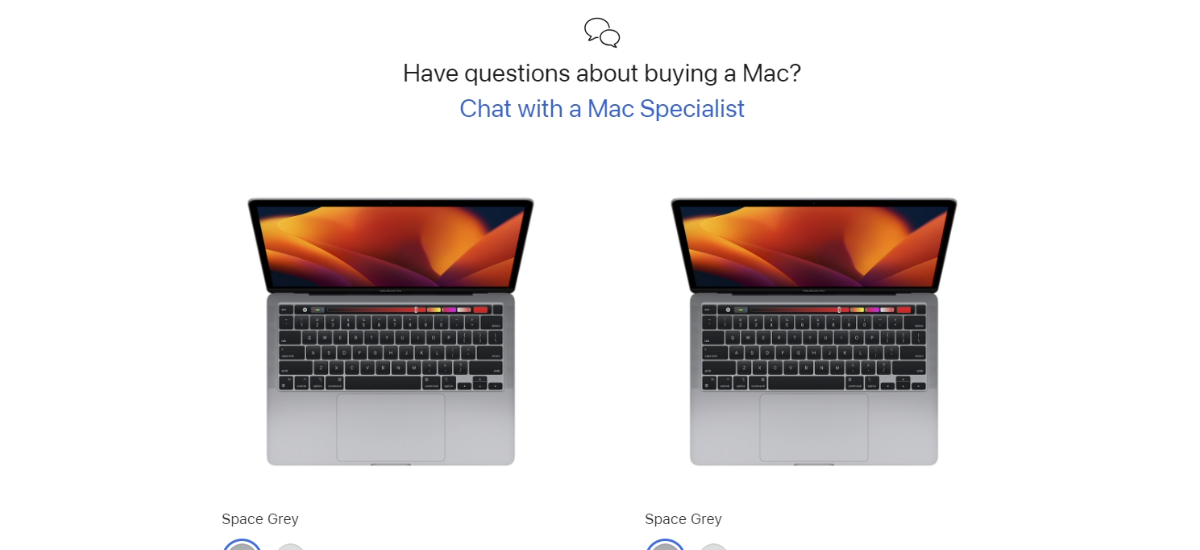Earlier Apple store page with 13-inch M2 MacBook Pro models
