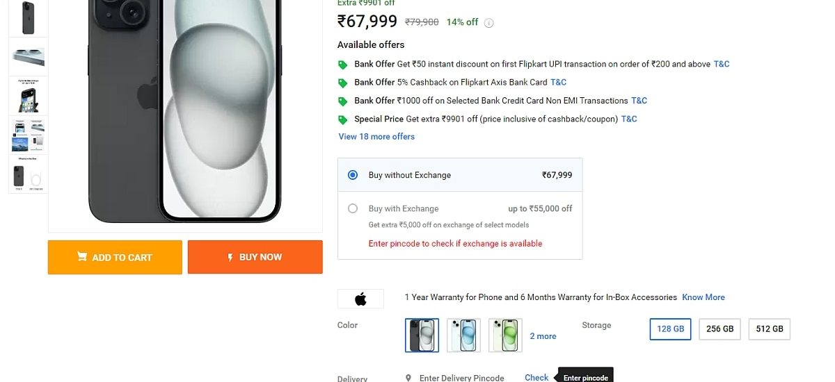 You can also exchange their existing smartphone and lower the iPhone 15 price in India by an additional Rs. 55,000. However, it’s worth noting that you would need to exchange a very valuable device in good condition in order to avail of the maximum exchange discount.