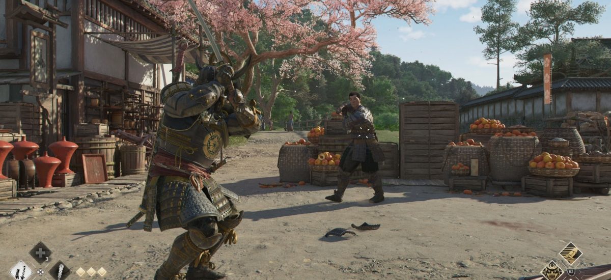 The walkthrough began with Yasuke, the hulking, armoured samurai, who rides into Fukuchiyama, on the trail of a corrupted daimyo. The intimidating samurai walks through town and encounters a group of samurai harassing villagers. We see Yasuke dispatch his foes with brutal efficiency. Using his club and sword, he crushes and cuts the other samurais down.