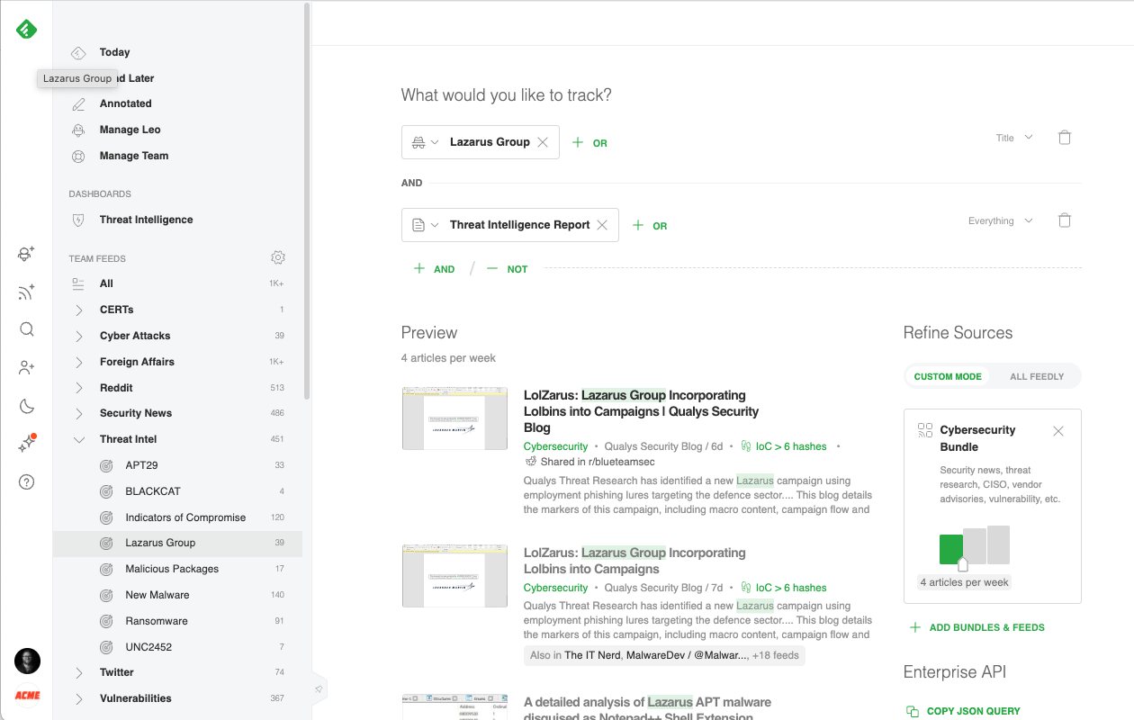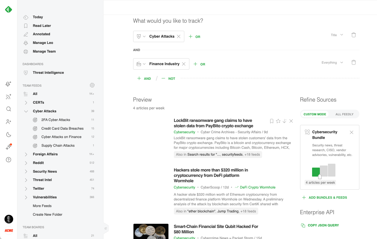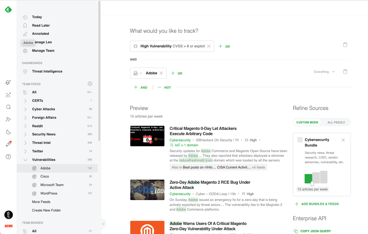 Try Feedly for Threat Intelligence