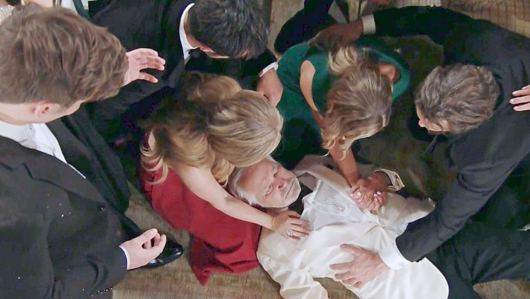 Bold and the Beautiful left Eric Forrester on the floor of his mansion with his family and friends around him as he gave the appearance of uttering his last words on Friday’s cliffhanger for the CBS soap. His final wish, “Be kind to each other.”