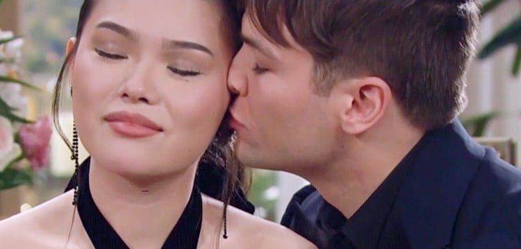 Eric Forrester‘s (John McCook) wedding became the backdrop for RJ Forrester (Joshua Hoffman) to show his stuff as a nuzzler. Luna Nozawa (Lisa Yamada) looked a bit uncomfortable at times as RJ purred around her head.