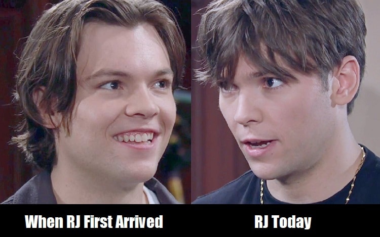 RJ Forrester sports a new hairdo along with clothes for that change. The pic above shows RJ when he first arrived home. Then RJ as he appears now on B&B.