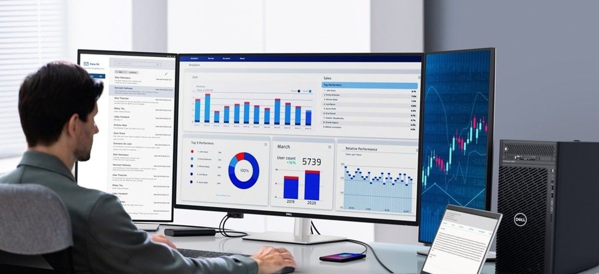 With the Dell UltraSharp 43 4K USB-C Hub (U4323QE) monitor, users can connect one PC to the monitor and split it into up to four full-HD screen partitions. The 4K (2,160×3,840 pixels) monitor also allows you to connect up to four different PCs to the monitor, view all four inputs and switch between them using KVM. It features USB Type-C and USB Type-A charging ports with up to 90W power delivery.