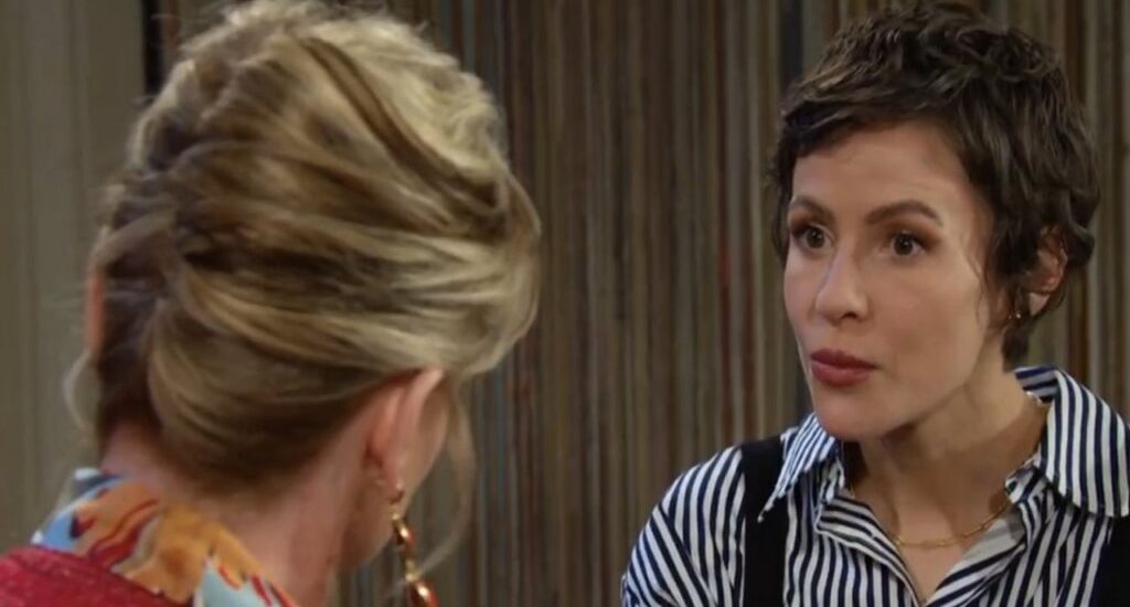 Look for Maggie Horton to learn from Bonnie and Justin Kiriakis that her daughter Sarah Horton hides a big secret on Peacock’s DOOL later this week.