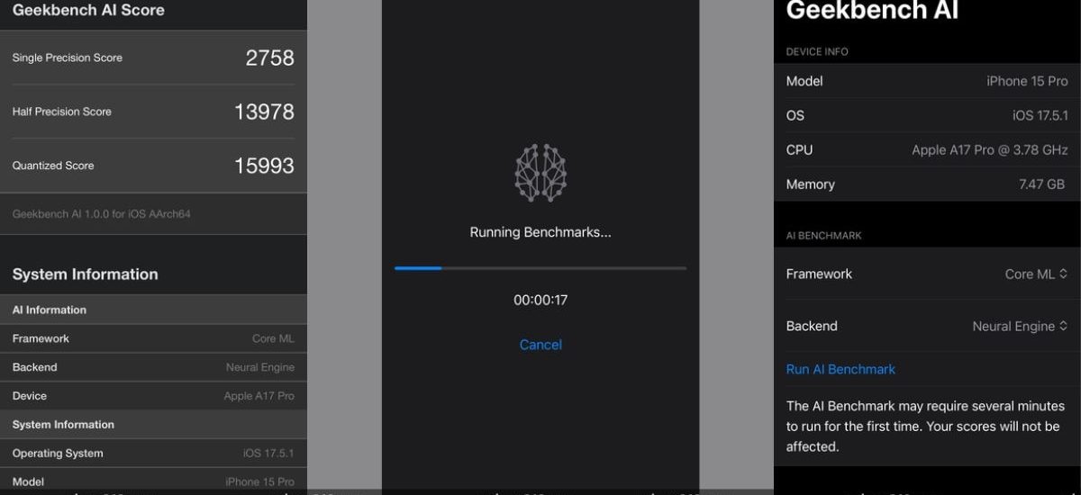 Geekbench AI iOS app (tested iPhone 15 Pro)
