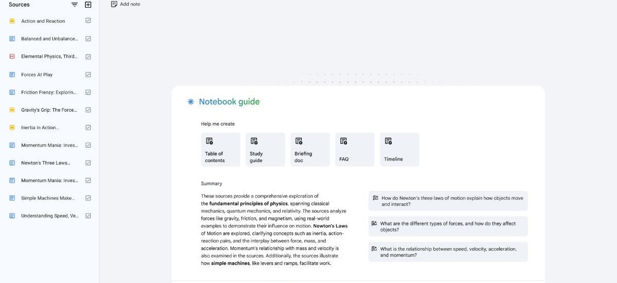 Further, the platform now shows inline citations for its generated responses. Hovering over the citation will open the supporting passage from the source for easy fact-checking. Users can also click the passage to dive deeper into the original text. Additionally, the NotebookLM also has a deeper level of understanding of the sources, and it can generate frequently asked questions (FAQs), briefing documents, and study guides when prompted.