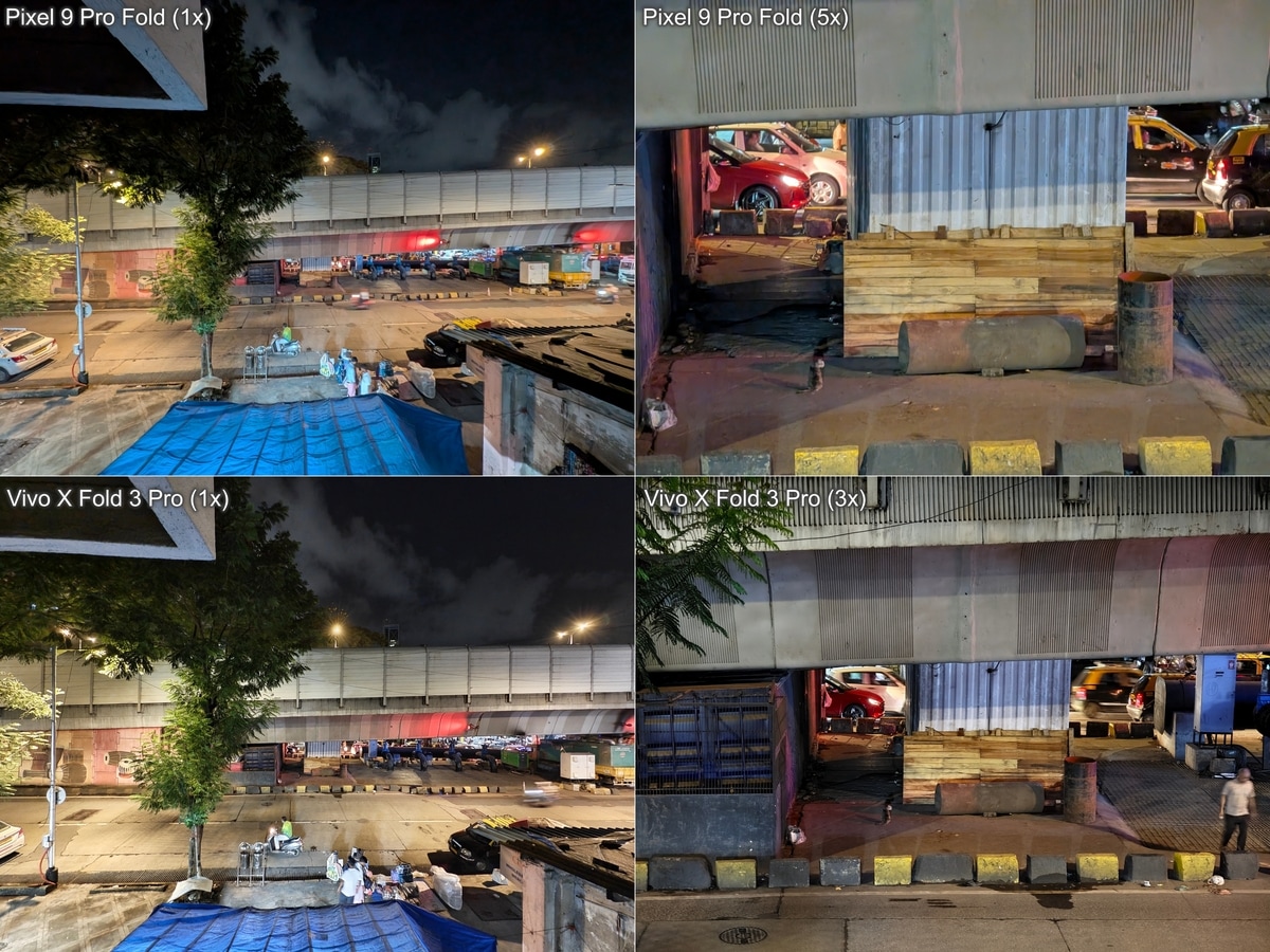 Google’s Pixel 9 Pro Fold loses to the sharper and more detailed photos produced by Vivo’s X Fold 3 Pro. Also, notice the better dynamic range in low light (tap images to expand)