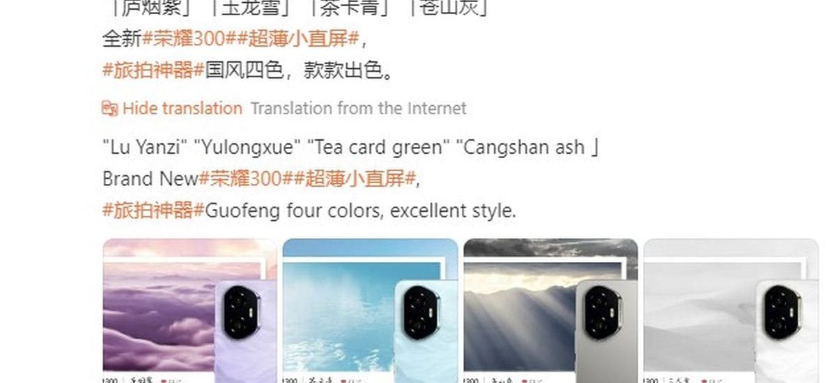 The upcoming Honor 300 design was revealed in a Weibo post by the company on Thursday. Another post by the company reveals that the phone will come in “Lu Yanzi”, “Yulongxue”, “Tea Card Green”, and “Cangshan Ash” (translated from Chinese) colour options. The purple, blue and white variants are seen with a marble-like pattern on the rear panel.