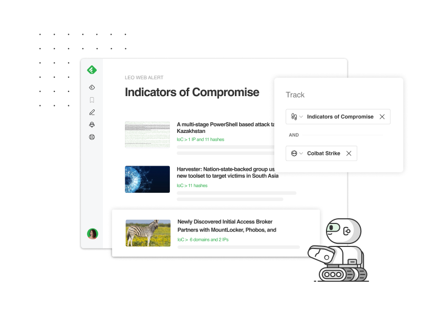 By asking Leo to track their customers’ assets and products both across the web and within their trusted security sources, Chris and Adam can feel confident they’re not missing anything, but they can also make sure they’re not wasting time on irrelevant news.