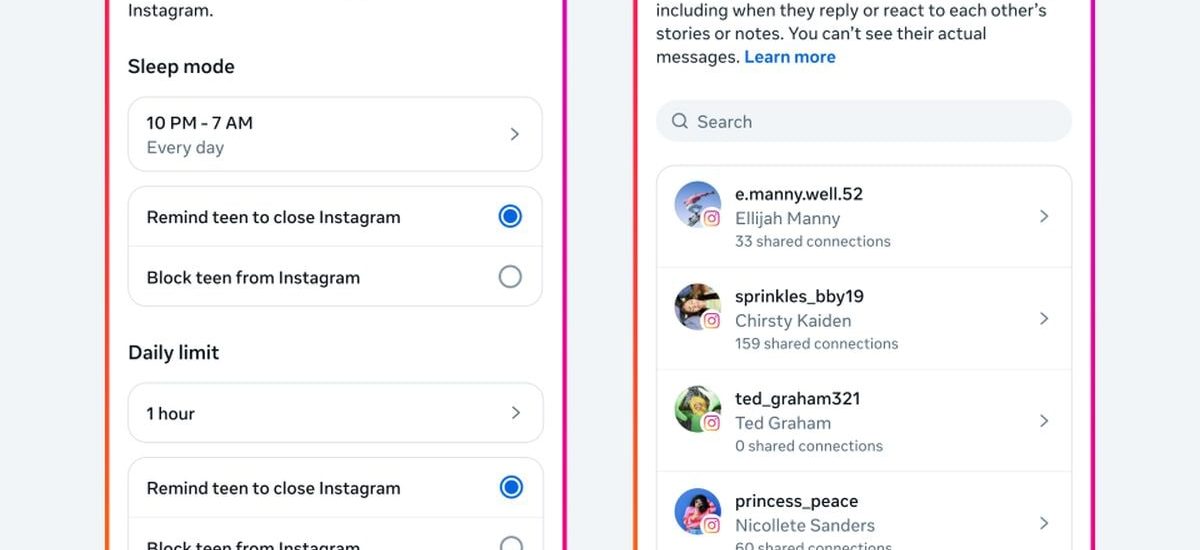 Parents can also opt to receive more insights into their teenagers’ time spent on Instagram, via the supervision feature on the app. It will show who the younger users have messaged over the past week (this includes reactions and replies to stories and notes) without displaying the actual message content.