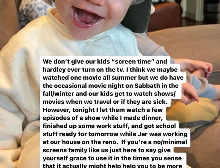 Audrey Roloff wants other parents who are no or minimal “screens family” to know that it is alright to “give yourself grace” and let your children watch television. She suggests doing it in times when you feel it can help you be “more present and peaceful” the rest of the night.