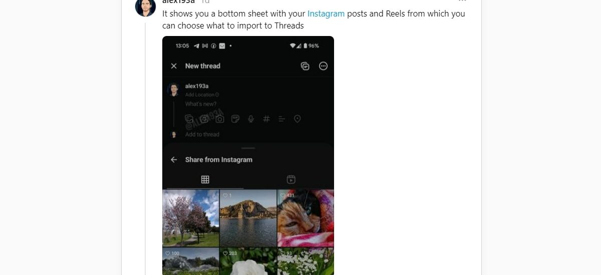 Tapping the new Instagram button in the compose box in Threads will display a grid with Instagram posts and Reels. Users can then choose which Reels and posts they want to share on Threads. Meta reportedly confirmed to TechCrunch that it is indeed testing the feature.