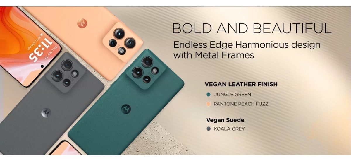 The Motorola Edge 50 will sport a 6.67-inch 1.5K 3D curved pOLED screen with 1,900 nits peak brightness level and Smart Water Touch feature. It will be powered by a 4nm Snapdragon 7 Gen 1 SoC. The 256GB storage variant of the handset is teased to support virtual RAM expansion. The phone will support three years of OS upgrades and four years of security updates.