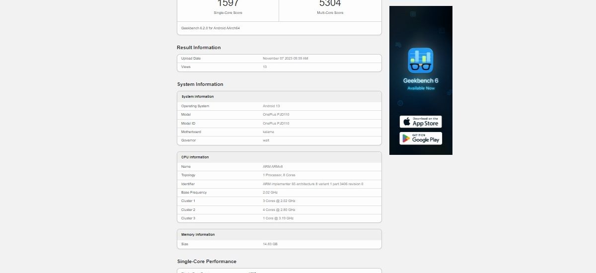 Further, the listing shows that the phone has received a single-core score of 1,597 points and a multi-core score of 5,304 points. These points do not reflect the actual performance of the OnePlus Ace 3, though, as the phone listed on Geekbench could be a prototype and might go through future refinements.
