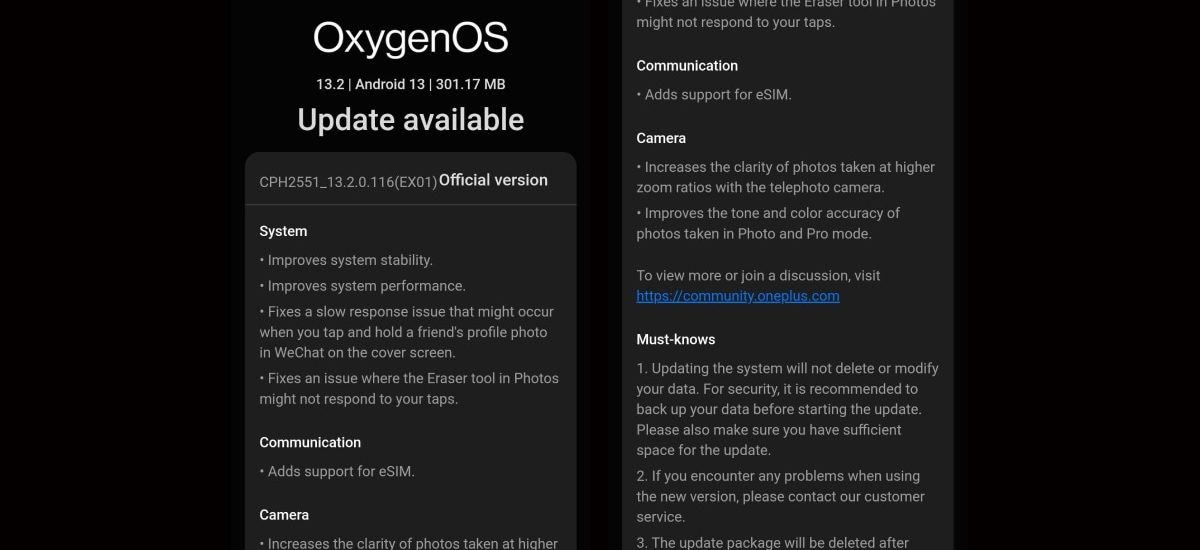 The company released the new OnePlus Open update in India with firmware version 13.2.0.116. With the update, the foldable receives several changes – one of which includes eSIM support. Alongside system performance improvements and bug fixes, the update also includes considerable camera enhancements. The update, OnePlus claims, improves the clarity of photos captured with the telephoto camera. It also states that the tone and colour accuracy of images taken in Photo and Pro mode has been improved.