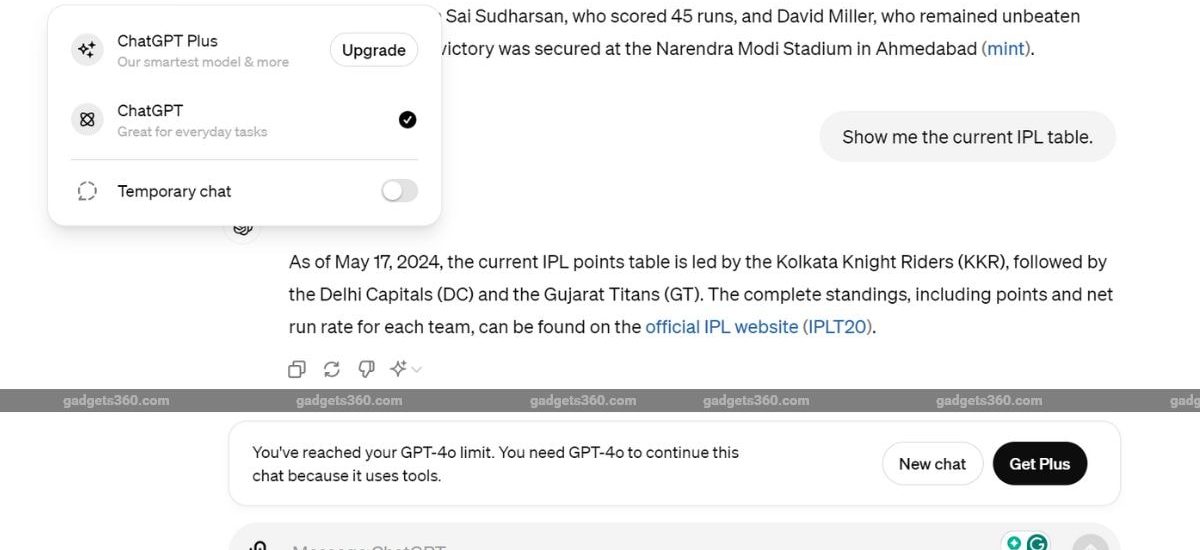 We, at Gadgets 360, got access to the GPT-4o model on Friday morning. This confirms that the AI model will be available in India, even when it was not specified during OpenAI’s Spring Update event. However, it was available to only a couple of staff members, so it’s likely the company is rolling out the AI model gradually and it will take a few weeks before everyone can use it. The limited access is also very restrictive. I was able to get about ten questions in before my limit expired, and I was shifted back to GPT-3.5.