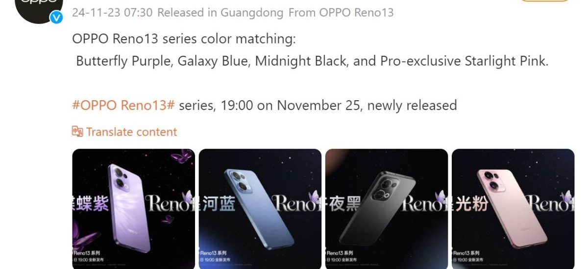 More details about the handset, including its specifications and price, are expected to be announced when the Oppo Reno 13 series is launched in China on November 25. The company has yet to announce any plans to launch the Reno 13 lineup in global markets, including India.