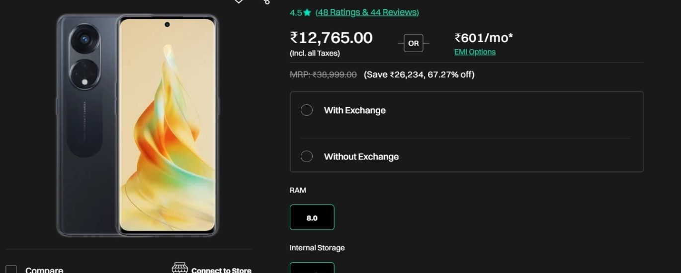 Oppo’s online store and Flipkart are showing the original launch price tag for the Oppo Reno 8T 5G.