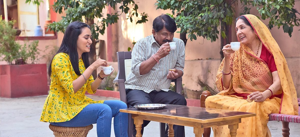 Besides the primary cast’s expected stellar performances, the one that stole the show for me was Jagmohan’s grandmother, played by Abha Sharma. Such a flavourful performance! She brings in a splash of refreshment every time she is on screen. From her spot-on accent and playful expressions to the mischief in her body language, Sharma has aced the role wonderfully and has managed to mirror the essence of the typical “dadis” of Uttar Pradesh.