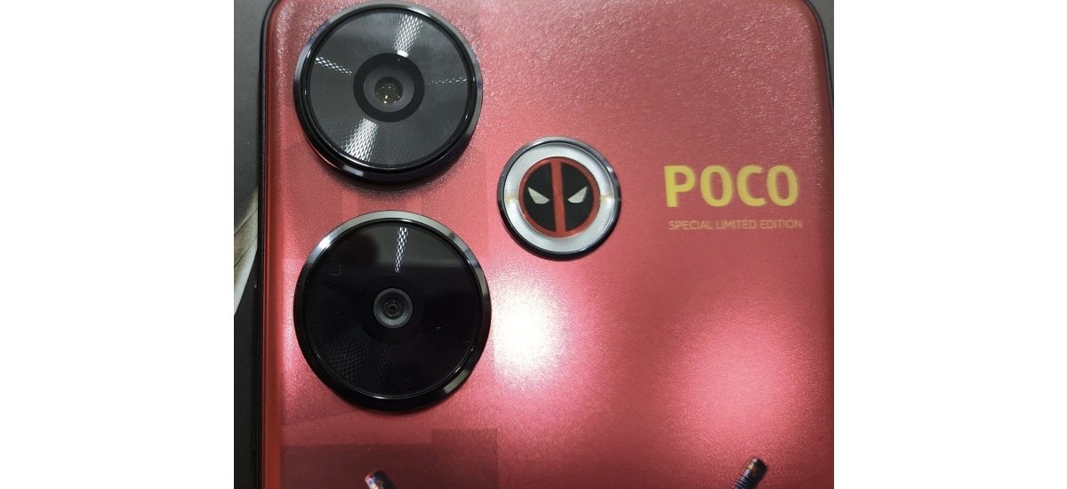 The back panel of the Poco F6 appears in a crimson shade, similar to the colour of Deadpool’s suit. The two rear camera modules are seen in black while the LED flash unit features the Deadpool logo on top.