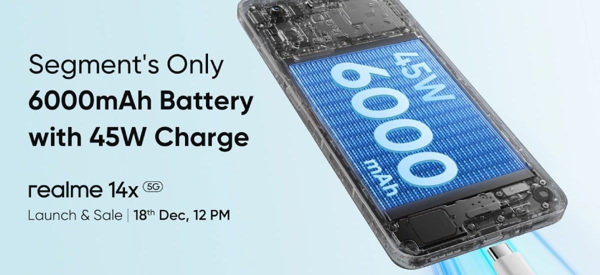 The Realme 14x 5G will be equipped with a 6,000mAh battery with support for 45W wired fast charging, the company confirmed in a press release. The handset is claimed to charge from zero to 50 percent in 38 minutes and a full 100 percent is said to take 93 minutes.