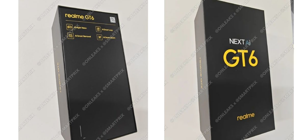 Smartprix, in partnership with @OnLeaks, posted alleged retail box images of the Realme GT 6. The retail box is shown in a black shade with the name printed in a yellow finish. We can see a “Next Ai” tagline on the box, indicating the presence of GenAI features in the phone.