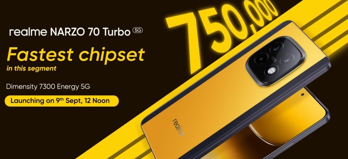 Realme Narzo 70 Turbo 5G was recently confirmed to launch in India. The company has now revealed an exact launch date as well. Realme had previously only teased the design, but now the company has showcased the full phone. Alongside the design and launch date, a few key features like the chipset and dimension details have also been confirmed alongside availability details. The upcoming smartphone will join the existing Realme Narzo 70 series in the country.