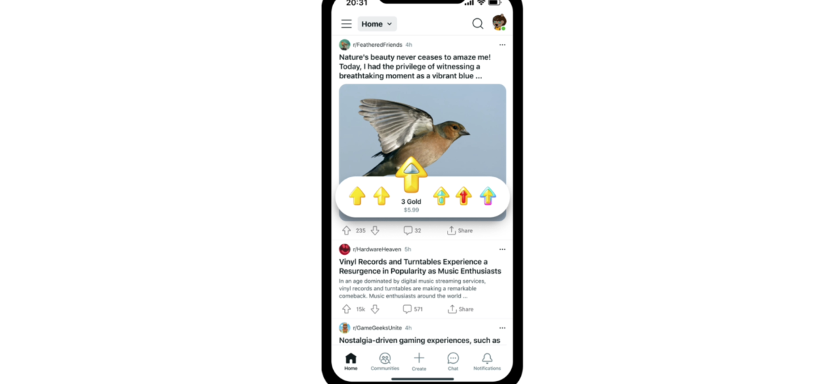 The company has also brought a simplified way to give away Reddit gold to users. With the new gold system, users can long press the upvote icon on mobile (or hover over it on desktop) directly within the post or comment they want to reward and select from a pop-up of six gold awarding options, ranging from $1.99 (roughly Rs. 165) for one gold to $49.00 (roughly Rs. 4,077) for 25 gold. This will result in a golden upvote in place of a regular one. This feature is only available in select communities on Reddit’s native mobile apps and will reach other communities in the coming weeks. The new gold system will be available on Web later this year.