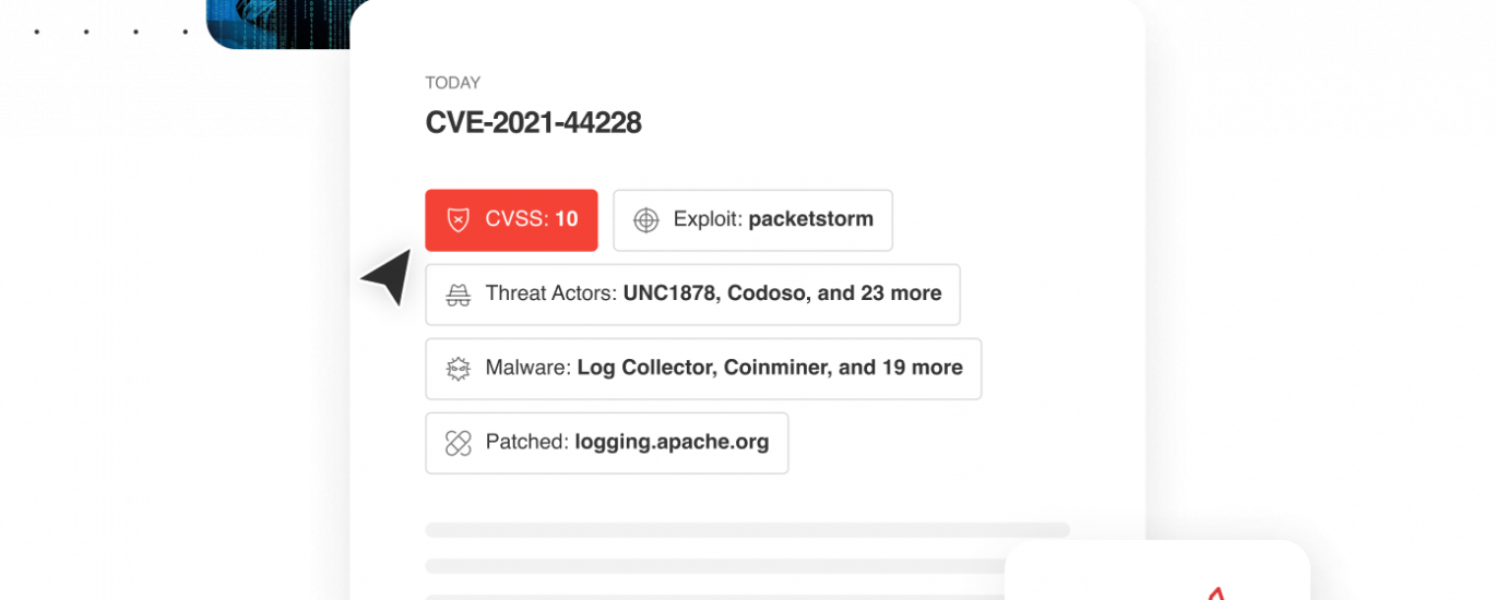 Here are some examples of CVE intelligence cards you can explore: CVE-2021-44228, CVE-2022-22965, CVE-2022-1388, and CVE-2022-26134.
