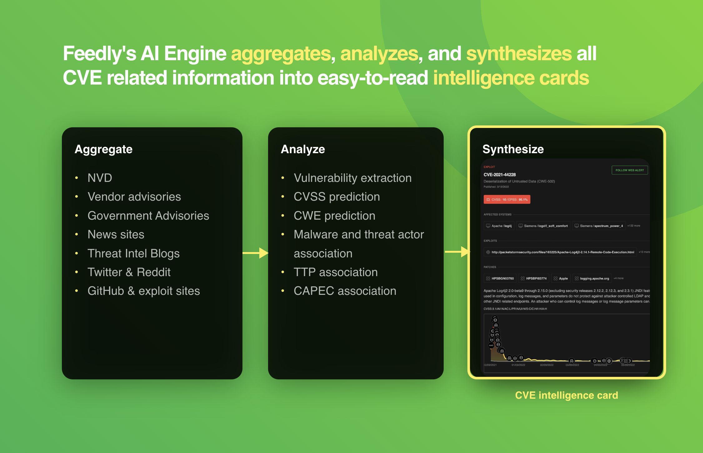 The CVE intelligence card is one of the machine learning models included in Feedly for Threat Intelligence. Start a free 30-day trial to see how Feedly can help you speed up your threat intelligence.