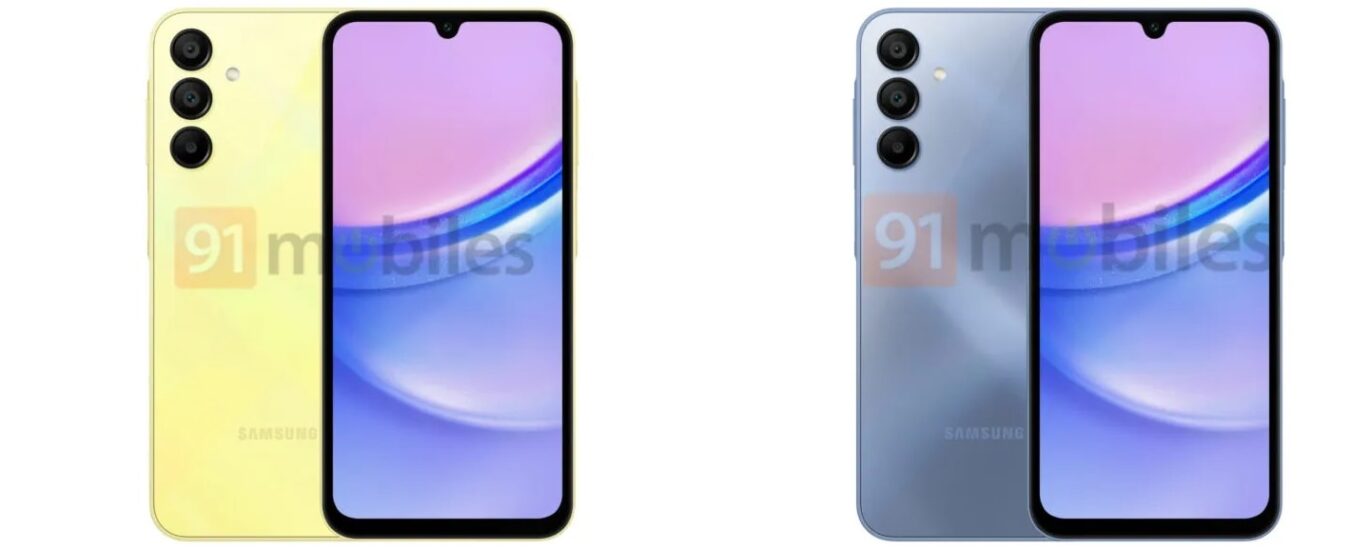 A report by 91Mobiles shared the alleged renders and specifications of the Galaxy A15 European model. On the front, we can see a waterdrop-style notch with the selfie camera right in the middle. The renders show the display with flat edges and thick bezels. It is seen in blue, light blue, and yellow shades with a triple rear camera setup. The back of the smartphone is seen with a triple camera setup with sensors placed in small individual circular modules alongside an LED flash unit.