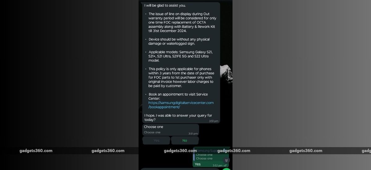 Gadgets 360 staff members were able to get in touch with Samsung Support to confirm the availability of this replacement program in the country.