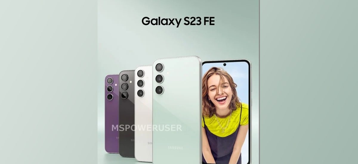 MSPowerUser has leaked the renders of the upcoming Samsung Galaxy S23 FE. The newly leaked renders indicate a hole punch display design for the handset with a curved display. The Samsung phone is seen in four colour options and they will reportedly have these — black graphite, pearl white, purple lavender, and olive — marketing names. Further, it is seen with thick side bezels on all four sides and the design is close to the base model Galaxy S23.