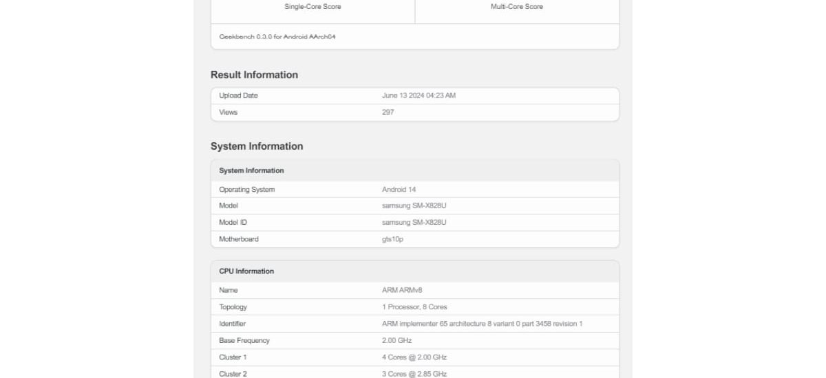 A new Samsung tablet with the model number SM-X828U was spotted on Geekbench. Tipster Ice Universe (@UniverseIce) claimed in an X post that this is the US version of the Galaxy Tab S10+. They added that the processor details listed on Geekbench suggested that the tablet is being tested with the MediaTek Dimensity 9300+ chipset.