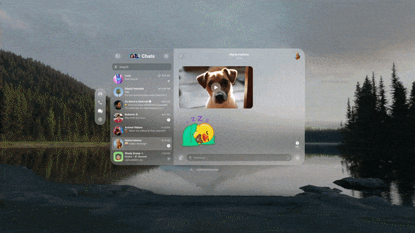 The app demo shows Telegram for visionOS with a left-aligned list of chats in the app, and selecting a window will open it on the right. You can send messages via Siri, or use the default virtual keyboard available in visionOS. The demo shows three-dimensional animated stickers and emoji reactions, but it’s unclear whether the final version will include these animations as they appear to take over most of the display.
