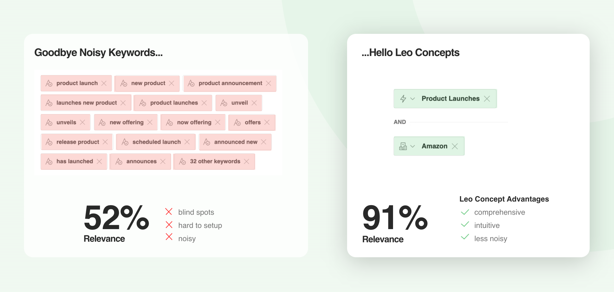 Without Leo Concepts, finding the right information would require manually updating a long list of keywords, leaving room for human error and irrelevant results.