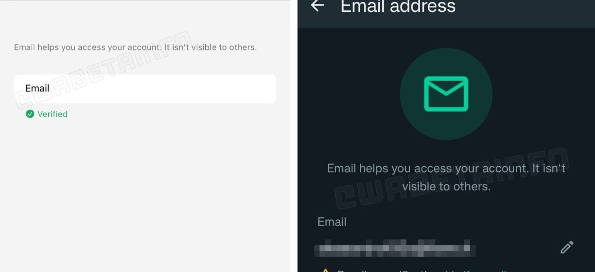 Adding an email on WhatsApp beta for iOS (left) and Android