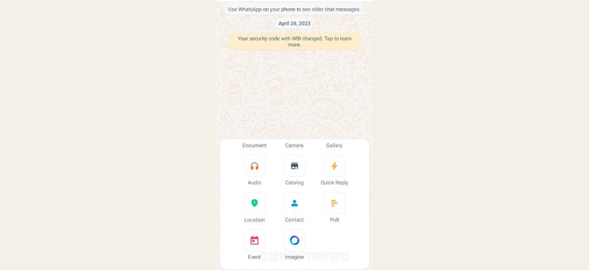 As visible in the screenshot, a new quick shortcut called Imagine is seen in the attachments option through which Meta AI’s image generator capabilities can be summoned. As per the report, it is present in a beta build of WhatsApp